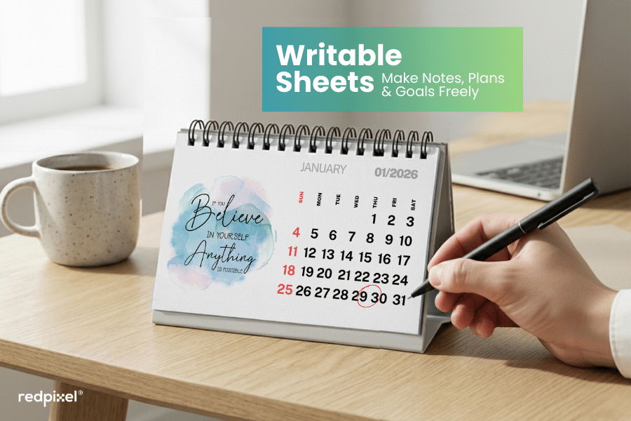 At Redpixel®, we specialize in creating fully customized photo calendars that perfectly match your preferences. Simply share your favorite photos, and our team will bring your vision to life with precision and care.